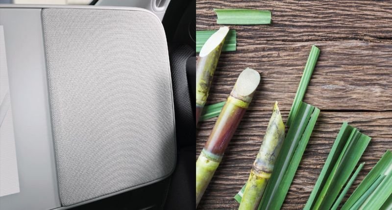 Material magnetik, headlining, dan karpet mobil menggunakan serat dan benang ramah lingkungan dari tanaman tebu. Material jok dan trim pintu terbuat dari benang hasil daur ulang botol plastik.