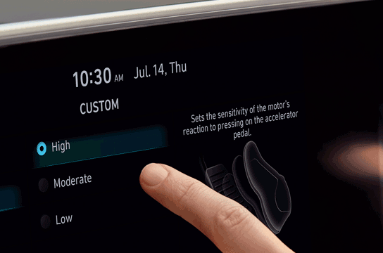 Anda dapat mengatur tenaga motor, sensitivitas akselerator, tenaga kemudi, dan mode driveline agar sesuai dengan gaya mengemudi Anda.