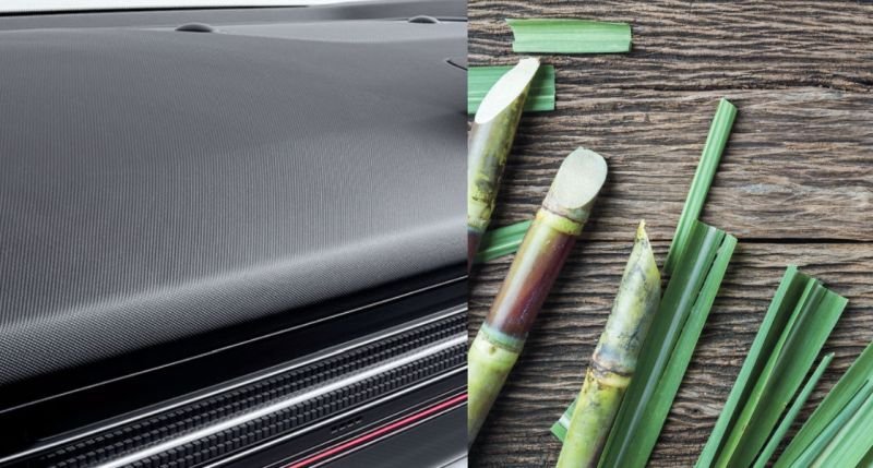 Serat ramah lingkungan dari benang yang diekstraksi dari tebu digunakan pada crash pad.